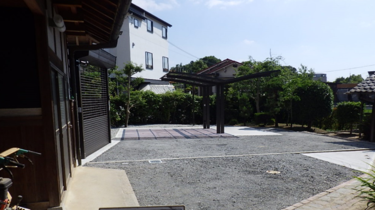 お庭に設けたカーポートは機能性を重視し、毎日の出入りがしやすいよう