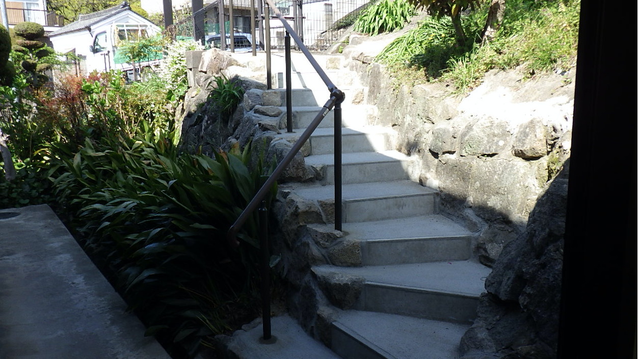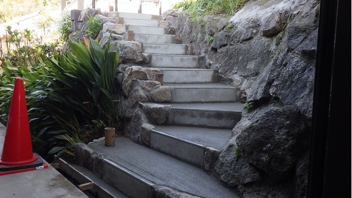 歴史ある石積みの階段を元の土台を活かしながら、利用しやすい階段に施工させていただきました。